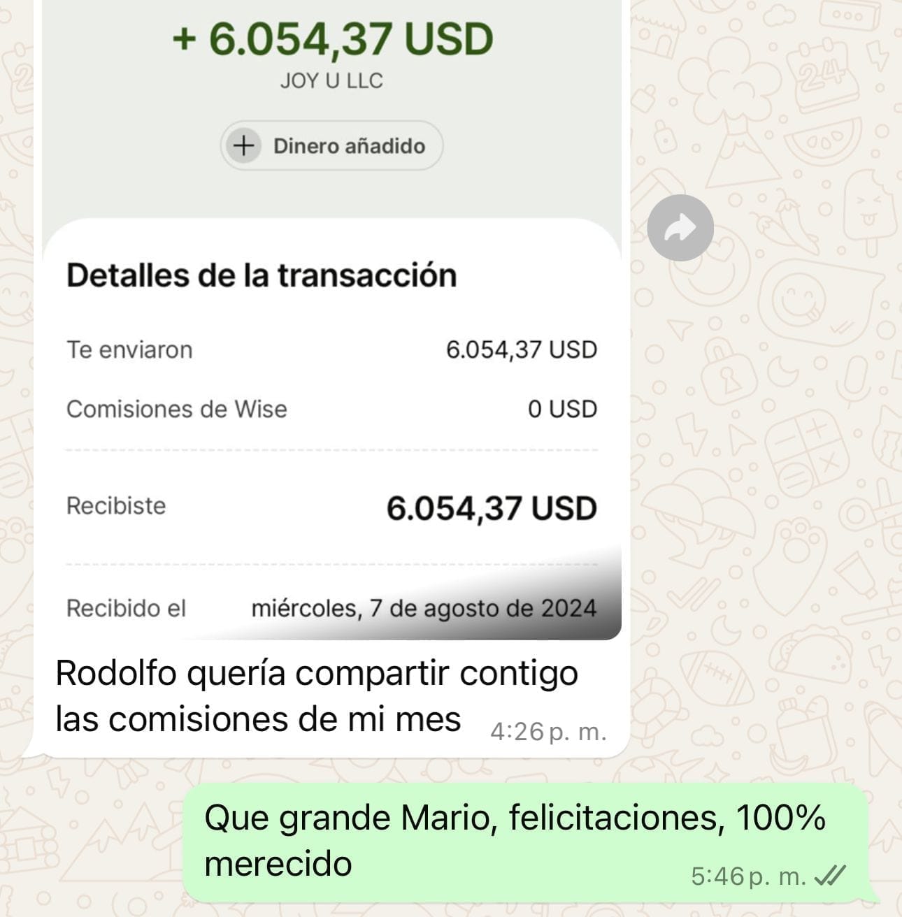 Mario (Chile) logró generar más de $6.000 USD en comisiones en tan solo 1 mes trabajando cómo Setter en una empresa de Real Estate.