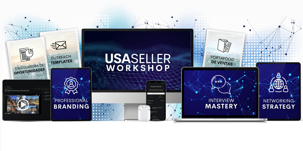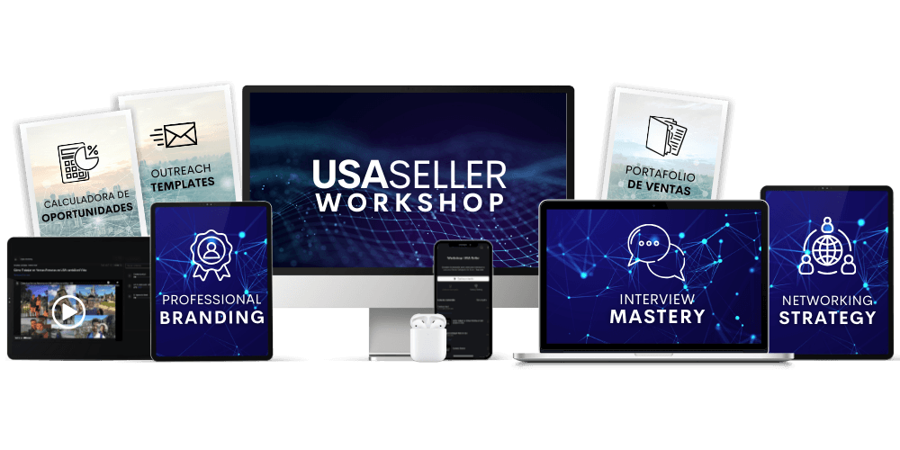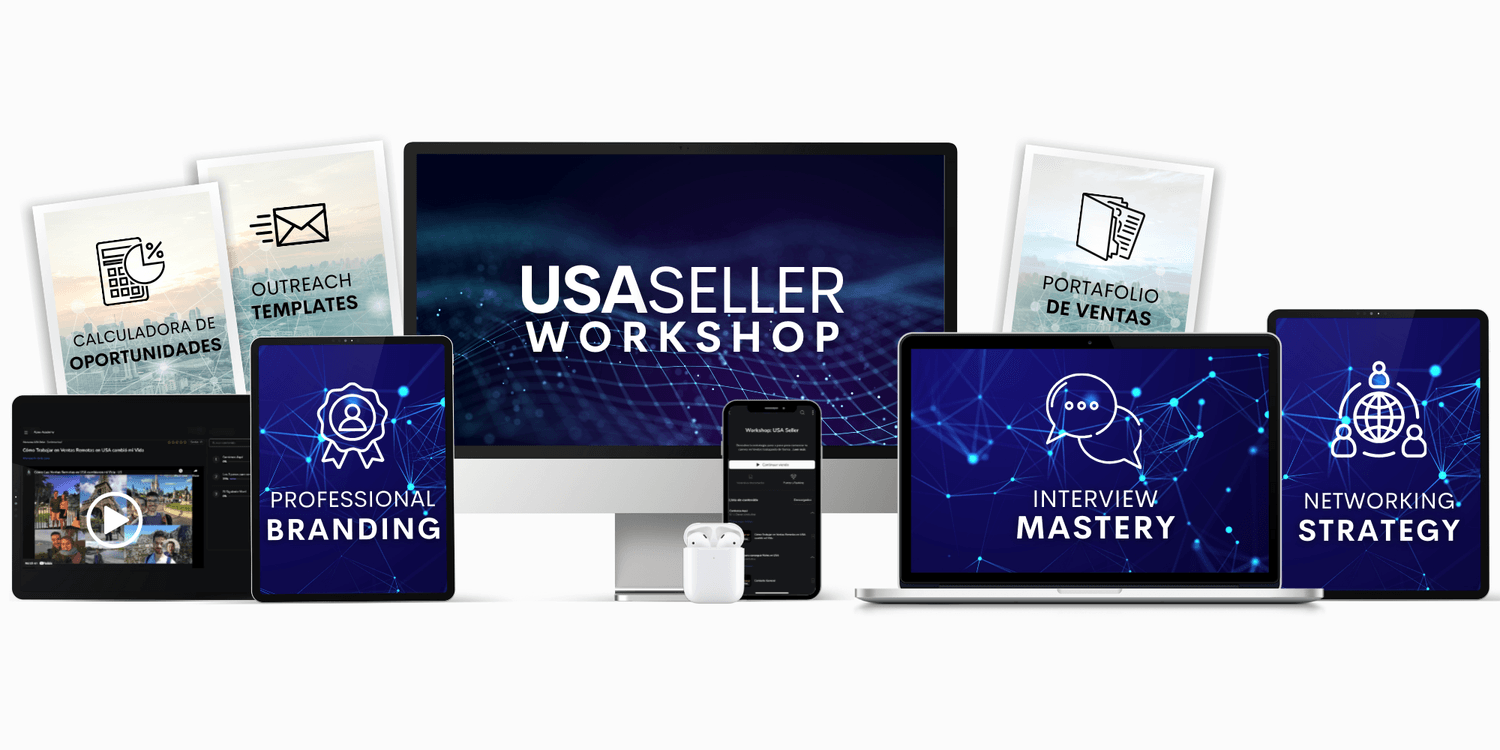 USA Seller es una estrategia paso a paso para comenzar o impulsar tu carrera cómo Vendedor 100% Remoto trabajando en empresas digitales de USA que te permitirá generar un ingreso en dólares, al nivel competitivo de allí sin necesidad de tener una visa, comenzar un negocio o hablar inglés perfecto.