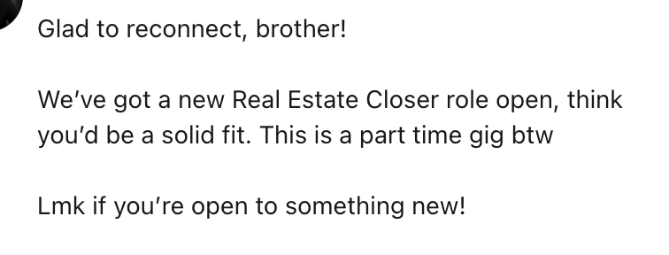 "Tenemos una nueva oportunidad para un Closer de Bienes Raíces, es una oportunidad Part time"