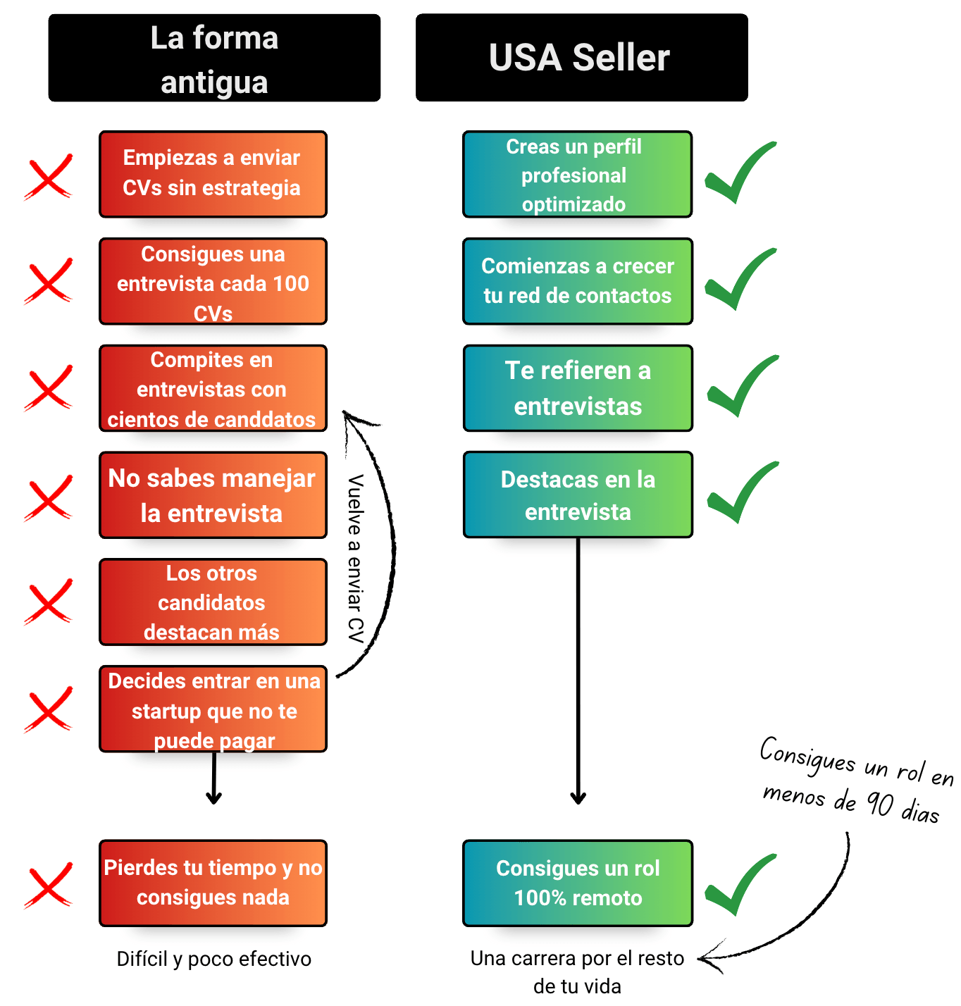 Y ahora, tu tienes la oportunidad de replicar la estrategia que me permitió conseguir mi primera oportunidad cómo vendedor en USA.